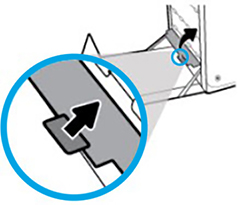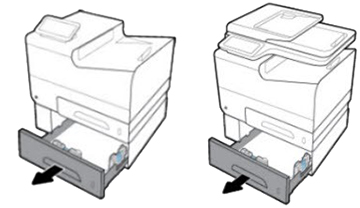 - Remove Tray 2 from the printer by pulling it out and releasing the latch at the rear left of the tray.Figure : Open Tray 2