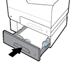 The stack of paper should not be higher than the stop ledge in the paper tray.Figure : Example of paper loaded correctly (below the stop ledge) - Reinsert Tray 2 in the printer and carefully push it inward to close it.