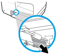 SFP models: PageWide 352, 452, and 552MFP models: PageWide 377, 477, and 577 - Using a flashlight look for paper in the pick tire area. Carefully remove the jammed sheet by pulling it to the right and then out of the printer.