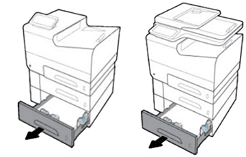 - If the jammed sheet is visible and easily accessible in Tray 1, pull it from Tray 1.