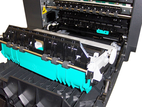 - Once you remove the jammed sheet and any scraps of paper, reinsert the duplexer and close the left door.Figure : Reinsert the ICU (duplexer)
